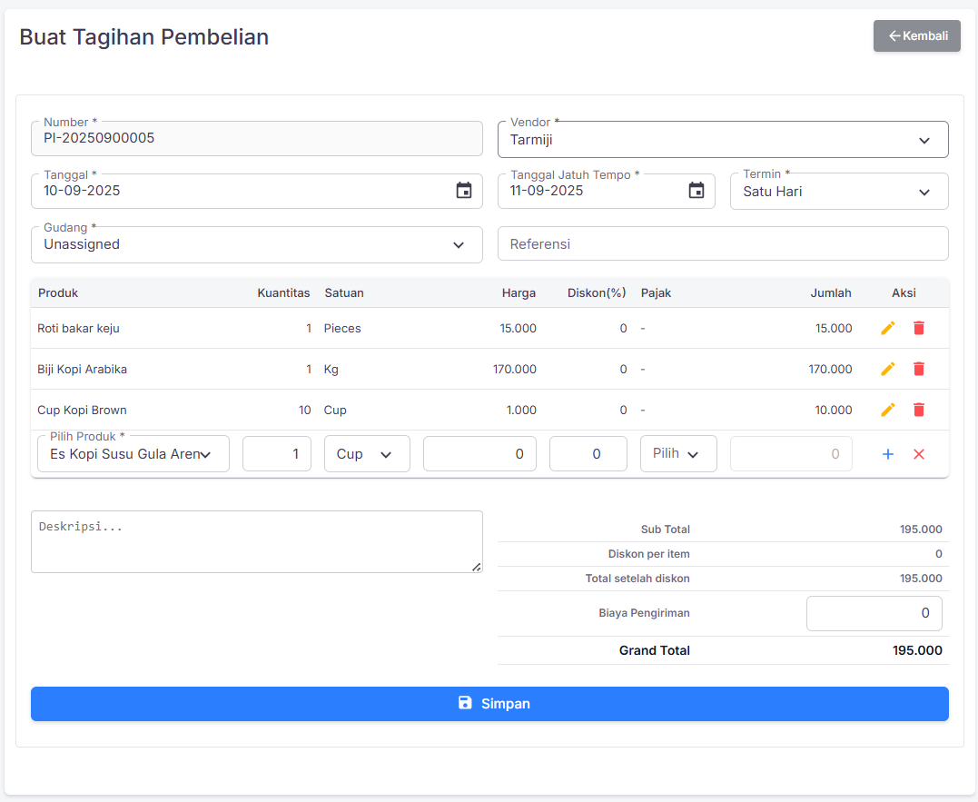Buat purchase order dan faktur dalam satu langkah mudah.