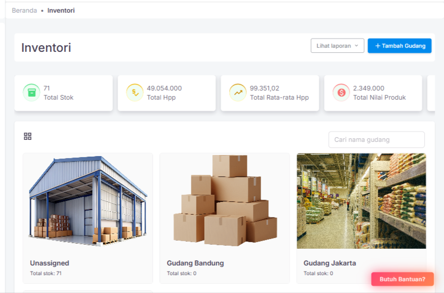 Lacak stok dan persediaan produk pada setiap gudang. Bisa multi gudang dan multi cabang!