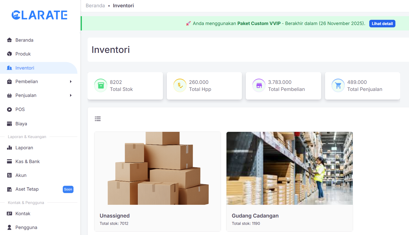 Nikmati tampilan ringkasan inventory untuk setiap produk dalam bentuk visual yang informatif dan menarik. Data transaksi disajikan secara ringkas melalui grafik dan elemen visual lainnya, sehingga memudahkan kamu melihat produk, memantau stok berdasarkan gudang, serta mengidentifikasi kebutuhan restock dengan lebih cepat dan efisien.