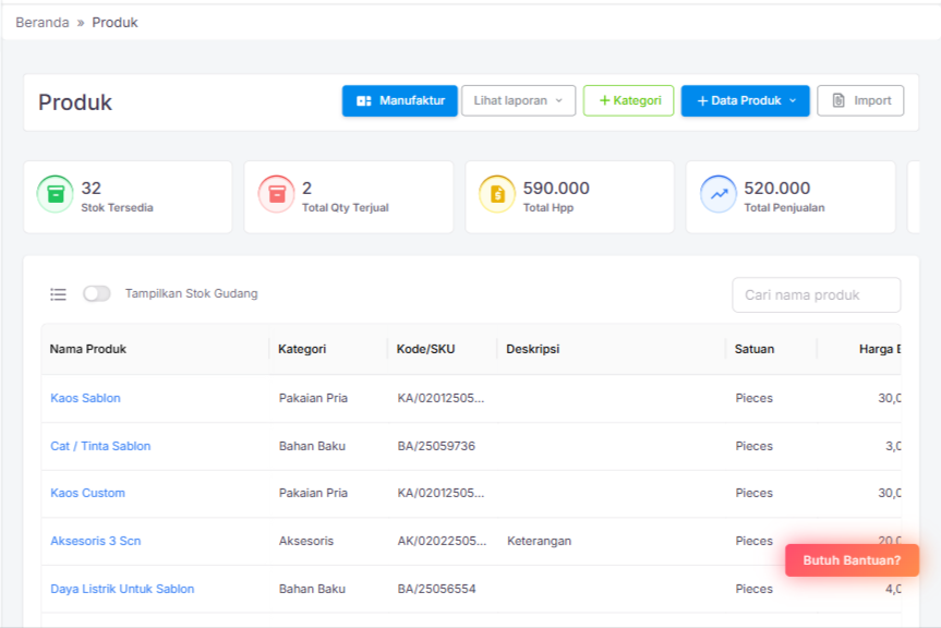 kamu bisa mempersiapkan master data produk dengan lebih tertata, mulai dari pengaturan harga beli dan harga jual secara konsisten, hingga pengelolaan bahan baku yang dibutuhkan dalam proses produksi. Selain itu, kamu juga dapat menetapkan batas minimum dan maksimum stok untuk menghindari kekurangan atau kelebihan persediaan. Dengan Clarate, operasional bisnismu menjadi lebih efisien dan tampak profesional.